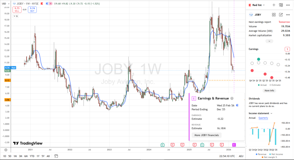 5. Upcoming Earnings – The company is scheduled to report its Q4 and full-year 2025 financial results on February 25, 2026. Given that JOBY is a growth stock in a disruptive new industry, top line metrics will be more relevant. As such, investors will want to see a significant y/y revenue increase even if profitability remains an elusive goal for now.